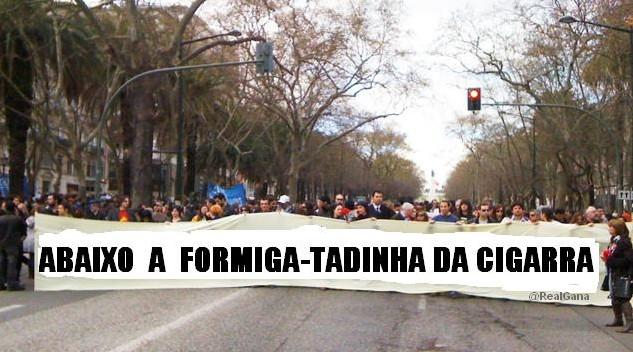 A CGTP, o PCP, o BE, os Verdes, a Geração à Rasca, os Indignados e a ala esquerda do PS, com a Helena Roseta e a Ana Gomes à frente e o apoio implícito do Mário Soares, organizam manifestações diante da casa da formiga.